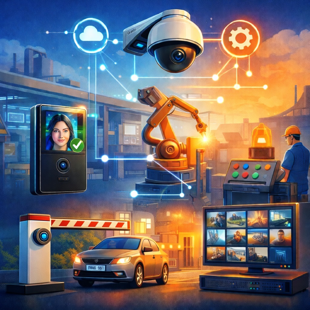 Now the camera does not just see a person at the door. It can check who they are, whether they are allowed in, whether they are showing up suspiciously late, whether the turnstile should open, whether an attendance log entry should be made, whether the operator should see the person’s name, and, while it is at it, whether it should turn on the light in the right zone and disarm that part of the facility. This is no longer just video recording. This is facility automation. It is the digital nervous system of a building, warehouse, store, factory, parking lot, school, house, clinic, or business center.
