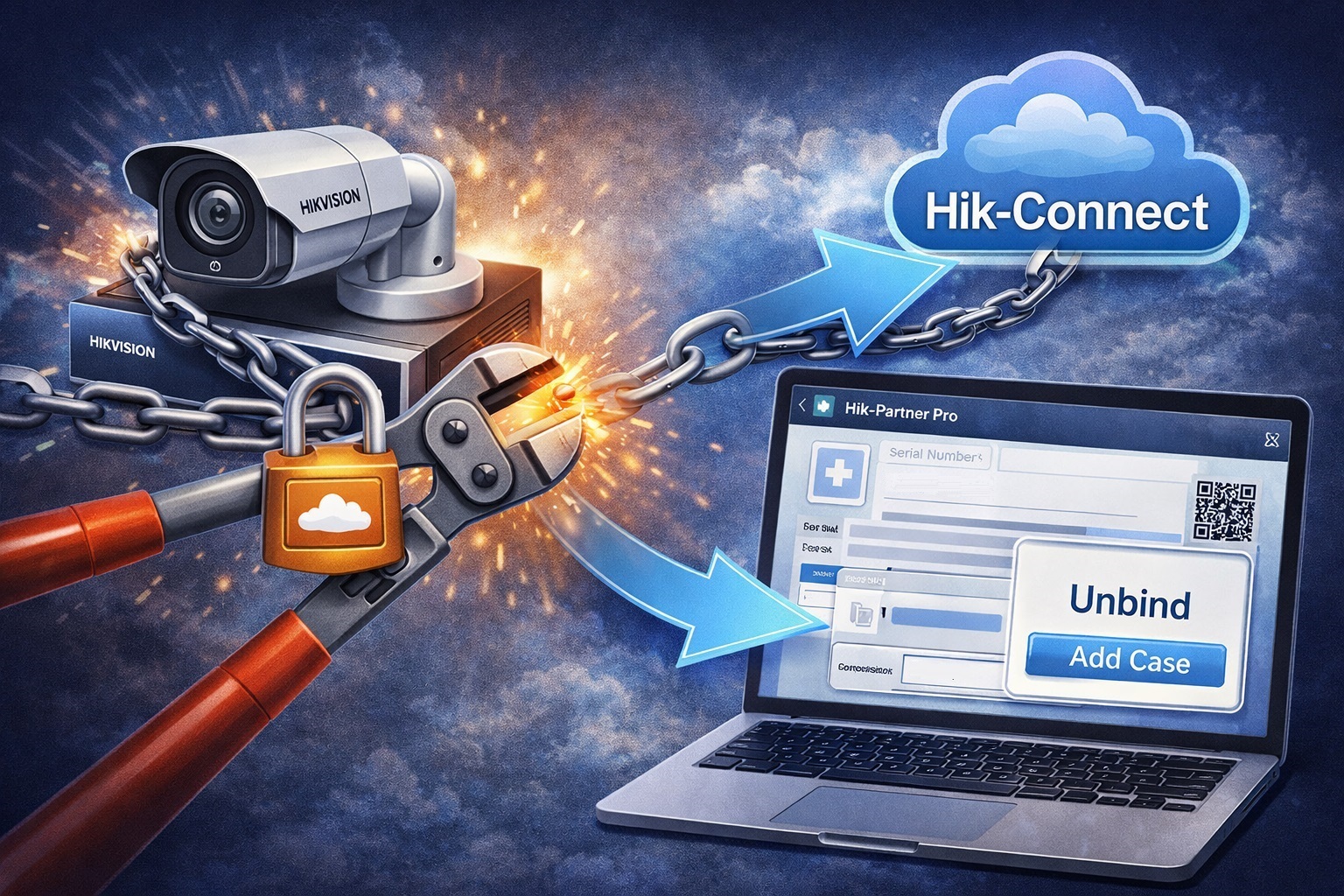 When normal removal is not possible, Hikvision documents an official unbind case process through Hik-Partner Pro. In Europe, Hik-Partner Pro is also part of the official support ecosystem for password and unbind cases. The workflow is simple in structure even if the reason you need it is not: sign in, create a support case, select the device unbinding scenario, provide the required details, and submit.
