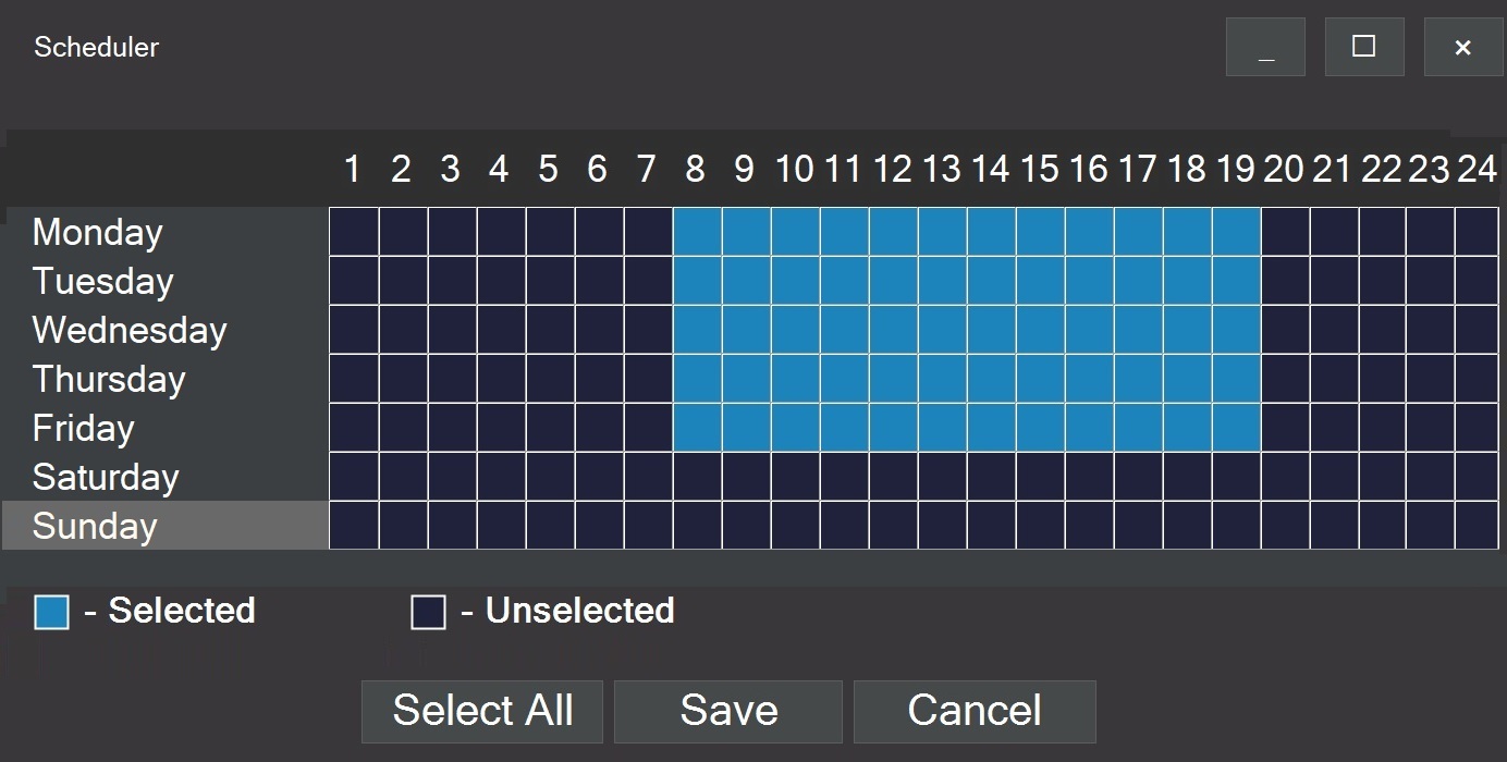 In essence, the system allows you to define how the camera operates over time. The camera stops living by the principle of “record everything all the time” and starts working like a real employee with a schedule.